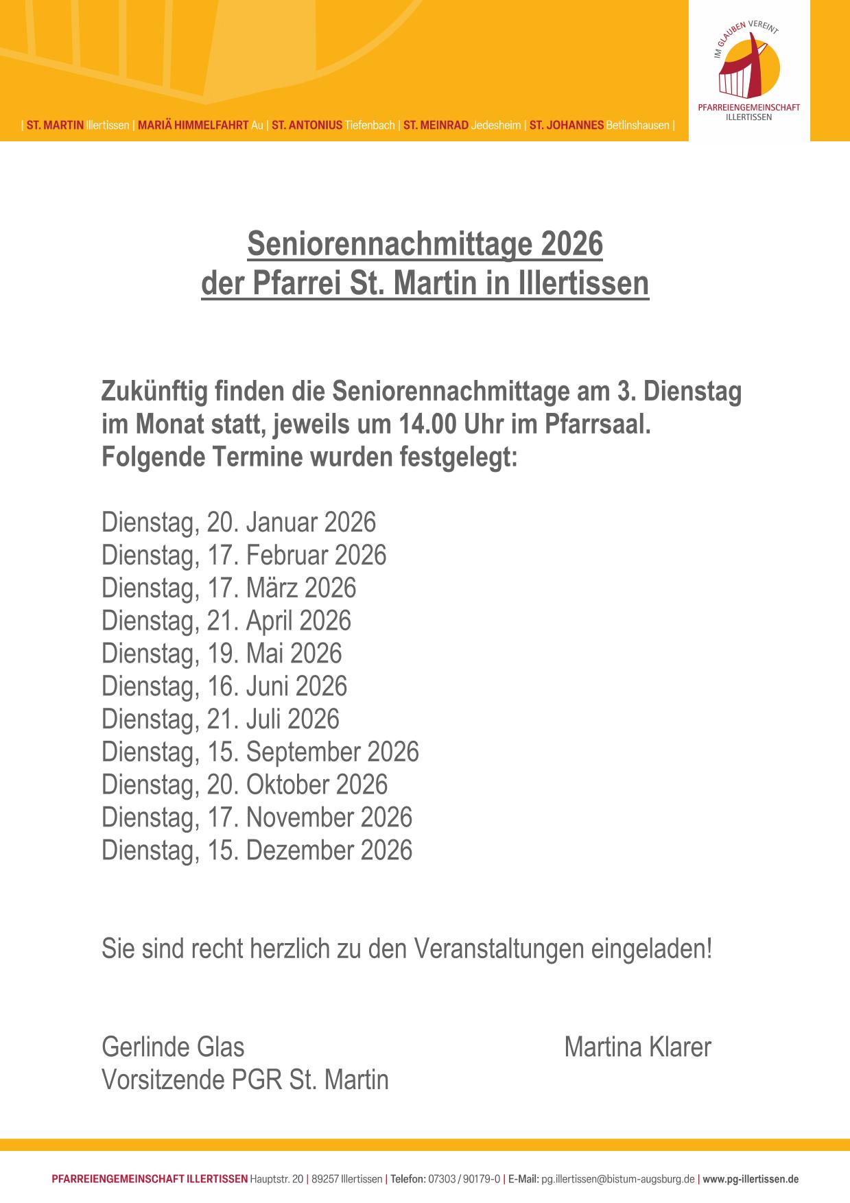 Seniorennachmittage 2026 der Pfarrei St. Martin Illertissen