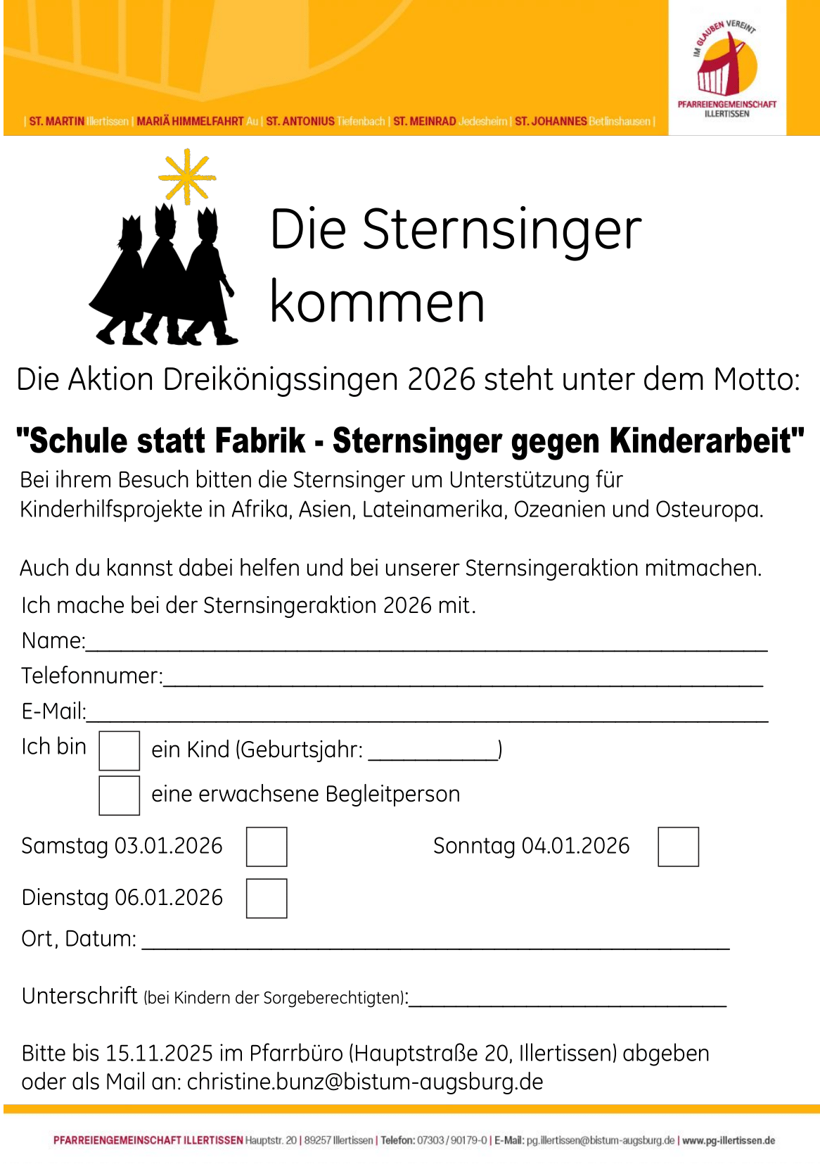 Anmeldung Sternsinger Illertissen
